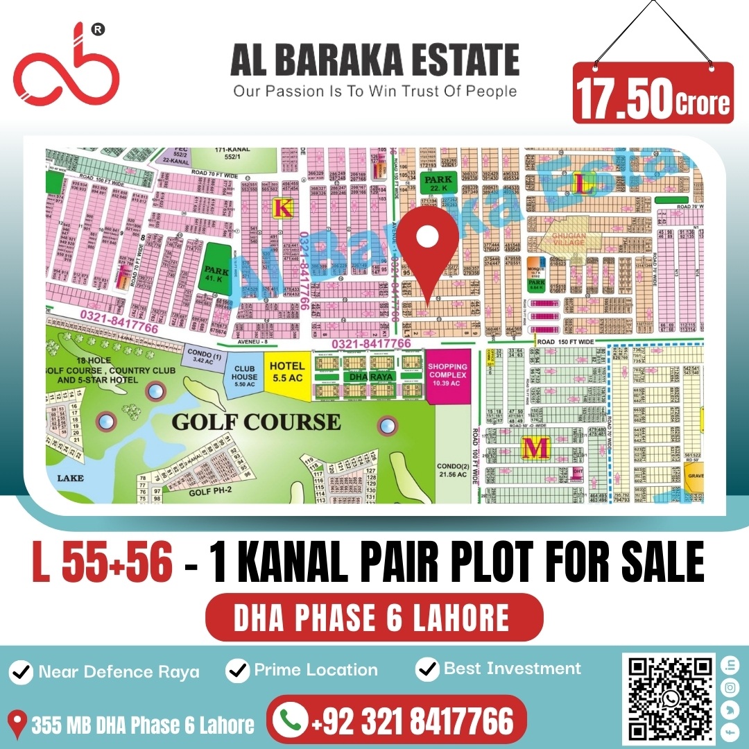 Looking for the perfect investment or dream home location in DHA Lahore? This 1 Kanal Pair Plot (L-55 & L-56) in Block L, DHA Phase 6 offers an exceptional opportunity in one of the most sought-after areas of the city.