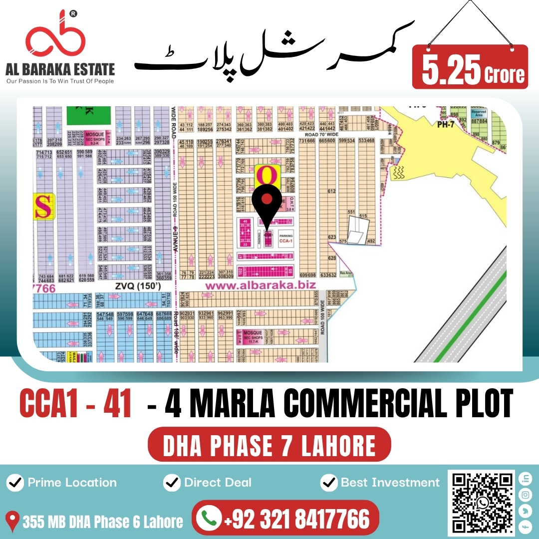 Looking for a premium investment opportunity in DHA Lahore? This 4 Marla commercial plot (Q-41) in DHA Phase 7 offers an ideal chance to secure a high-return investment in one of Lahore’s most sought-after business locations.