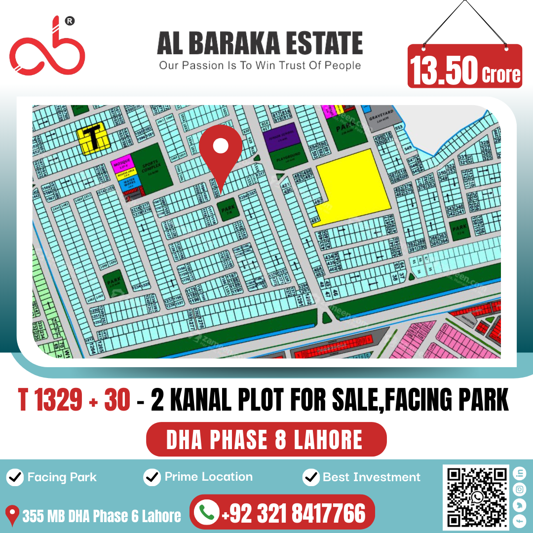 T-1329 + T-1330 – 2 Kanal Plot for Sale in DHA Phase 8, Lahore
