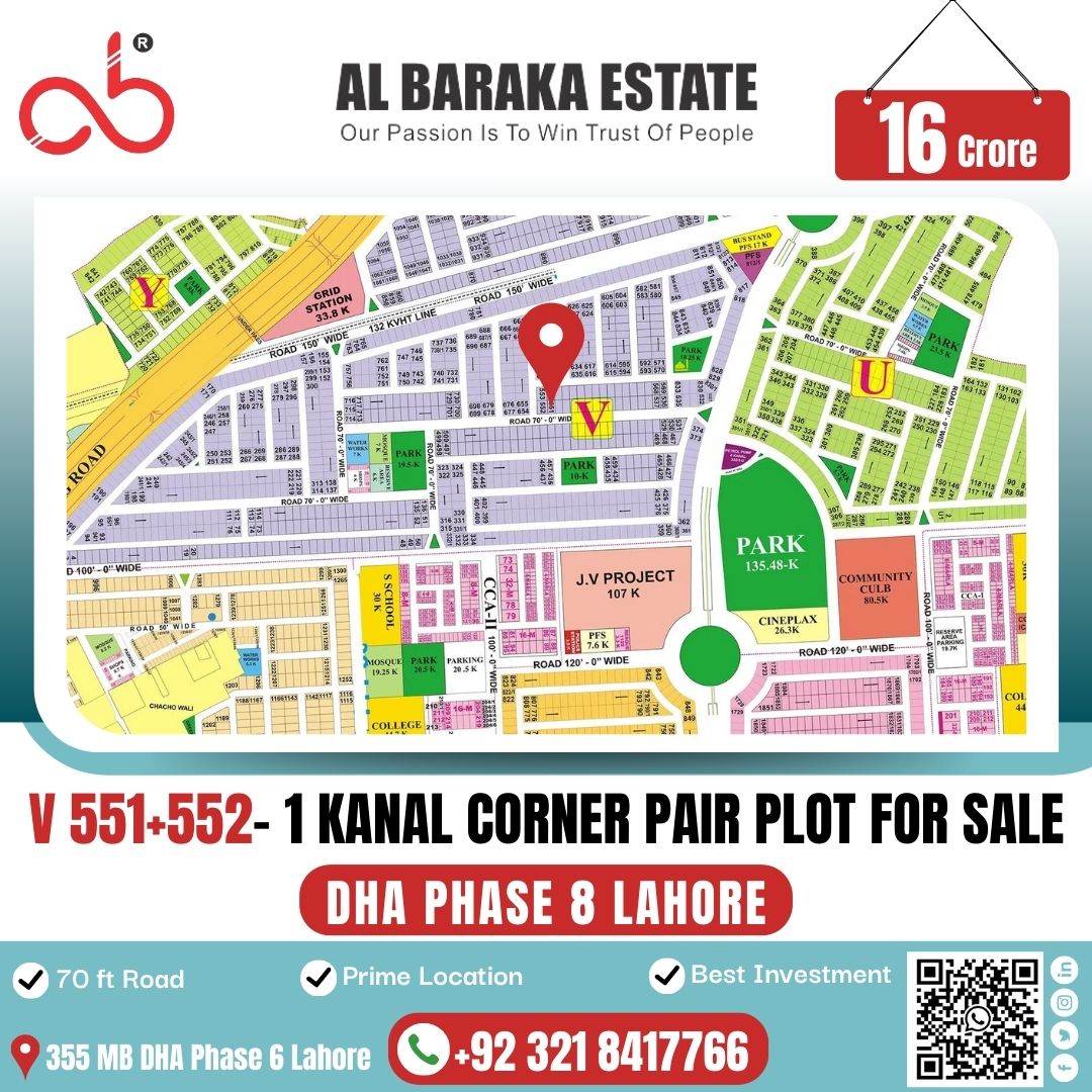 V-551 + V-552 – 1 Kanal Pair Plot for Sale in DHA Phase 8, Lahore